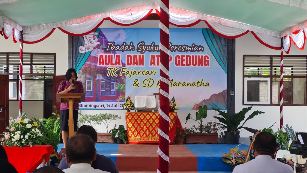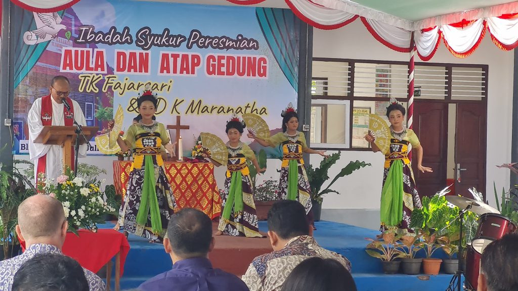 Blimbingsari, Senin 14 Juli 2025 — Hari itu, langit Blimbingsari tampak berseri. Mentari pagi menyinari lembut dedaunan yang masih basah oleh embun, seolah menyambut sebuah peristiwa istimewa yang penuh makna. Di halaman sekolah yang rapi dan bersih, bendera merah putih berkibar anggun diiringi senyum dan haru dari ratusan pasang mata yang berkumpul — tua, muda, dari dekat dan jauh. Mereka semua datang untuk satu alasan: Ibadah Ucapan Syukur dan Peresmian Renovasi Atap SDK Maranatha, TK Fajarsari, serta Aula.
