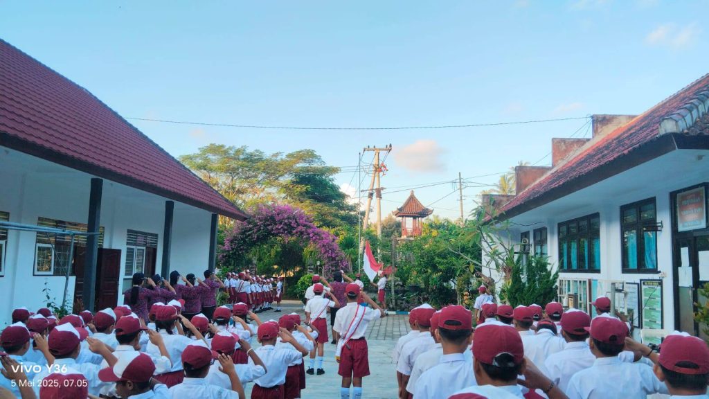 Suasana semakin khidmat saat bendera Merah Putih dikibarkan, diiringi lagu kebangsaan Indonesia Raya yang dinyanyikan dengan penuh semangat oleh seluruh peserta upacara. Momen ini menjadi pengingat akan pentingnya rasa cinta tanah air dan kebanggaan sebagai bagian dari Negara Kesatuan Republik Indonesia.